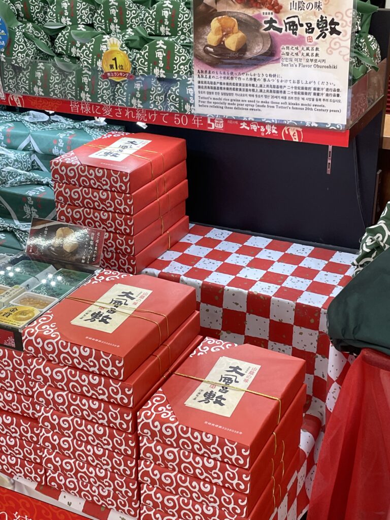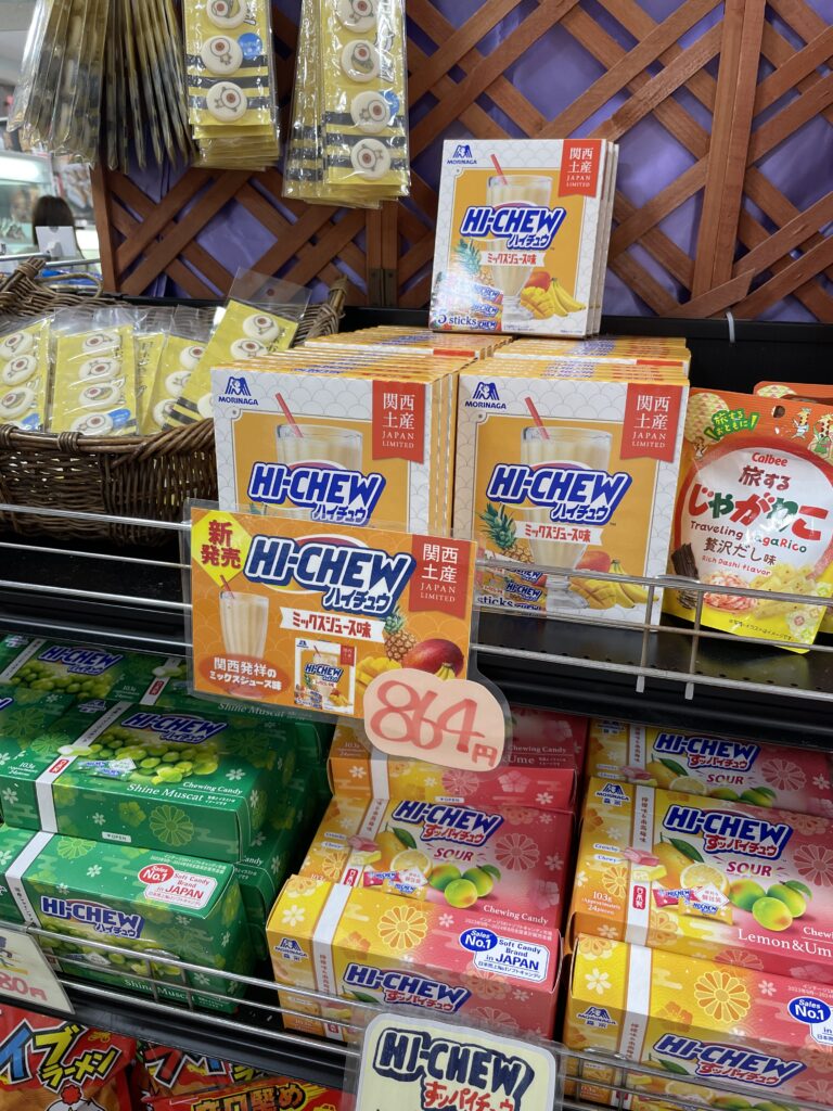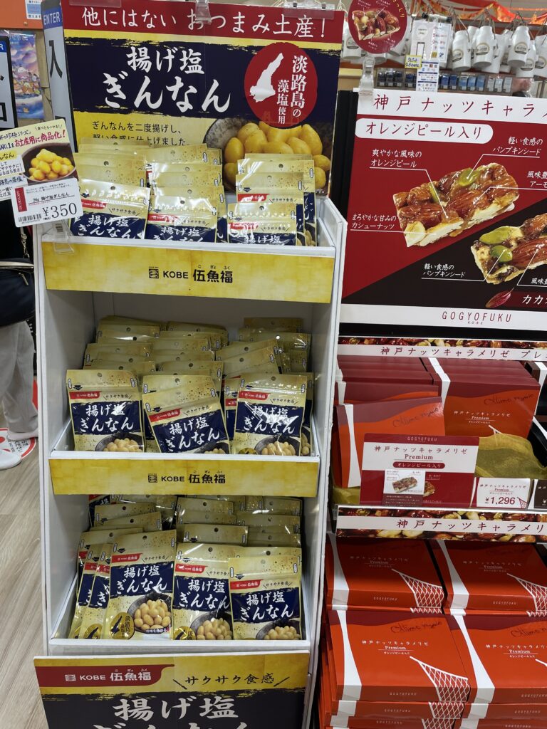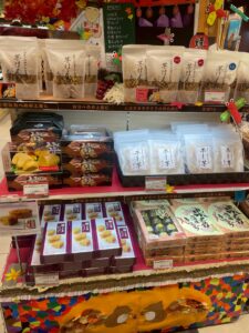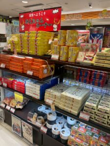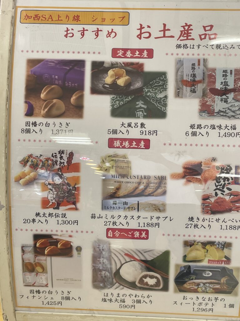 草津PAは、関西エリアの入り口というだけあって、棚には「551の豚まん」「たこ焼きせん」「宇治抹茶スイーツ」など、関西の味覚がずらり。